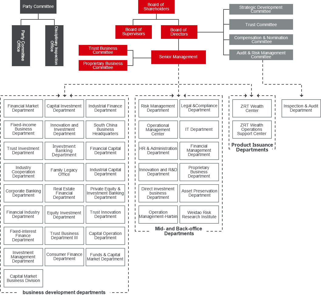 Beijing Zhongrong Dingxin Investment Management Co. Ltd. (ZRTDX) is an investment subsidiary wholly owned by ZRT and approved by CBRC with a paid-in capital of 1.5 billion yuan. Filed with the Asset Management Association of China, ZRTDX is a qualified manager of private security funds that provides professional asset management services through the issuance of private funds, being specifically specialized in private equity investments, comprehensive services for public companies, security investments and cash management. ZRTDX has a competent professional team with rich experience in operations, project development and risk management and also has a long-standing record of excellent performance.